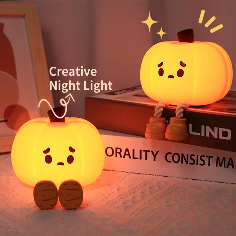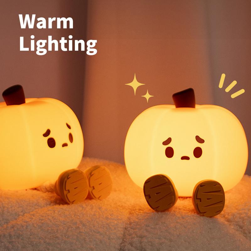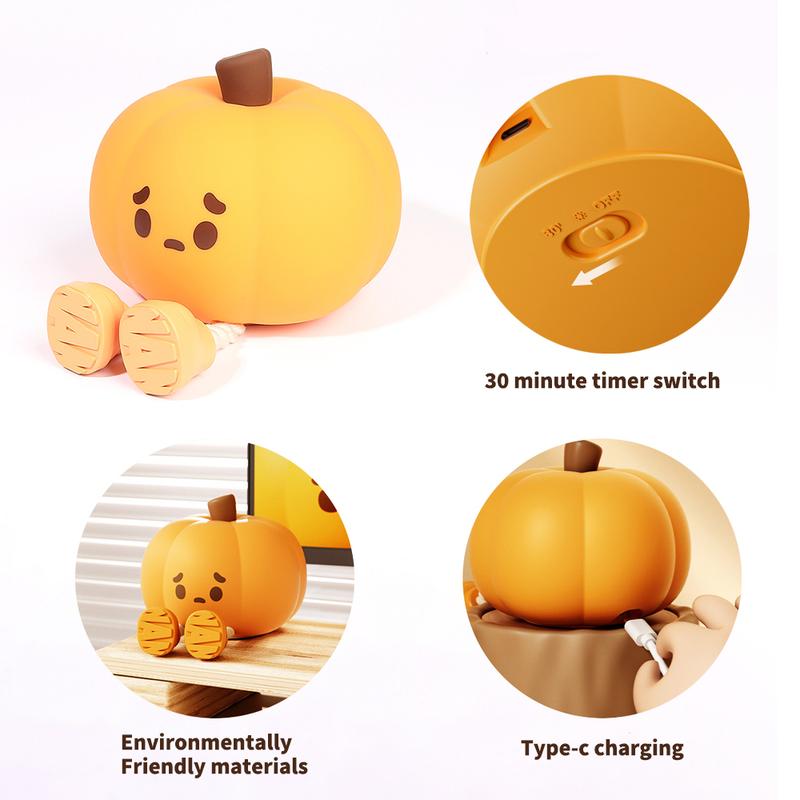 Halloween Pumpkin Nightlight, Halloween Outdoor Decoration, Mini LED Pumpkin Lamp, with 3-Level Adjustable Light, Child-Friendly Nightlight, Safe Silicone Rechargeable Bedside Touch Light, Suitable for Families
